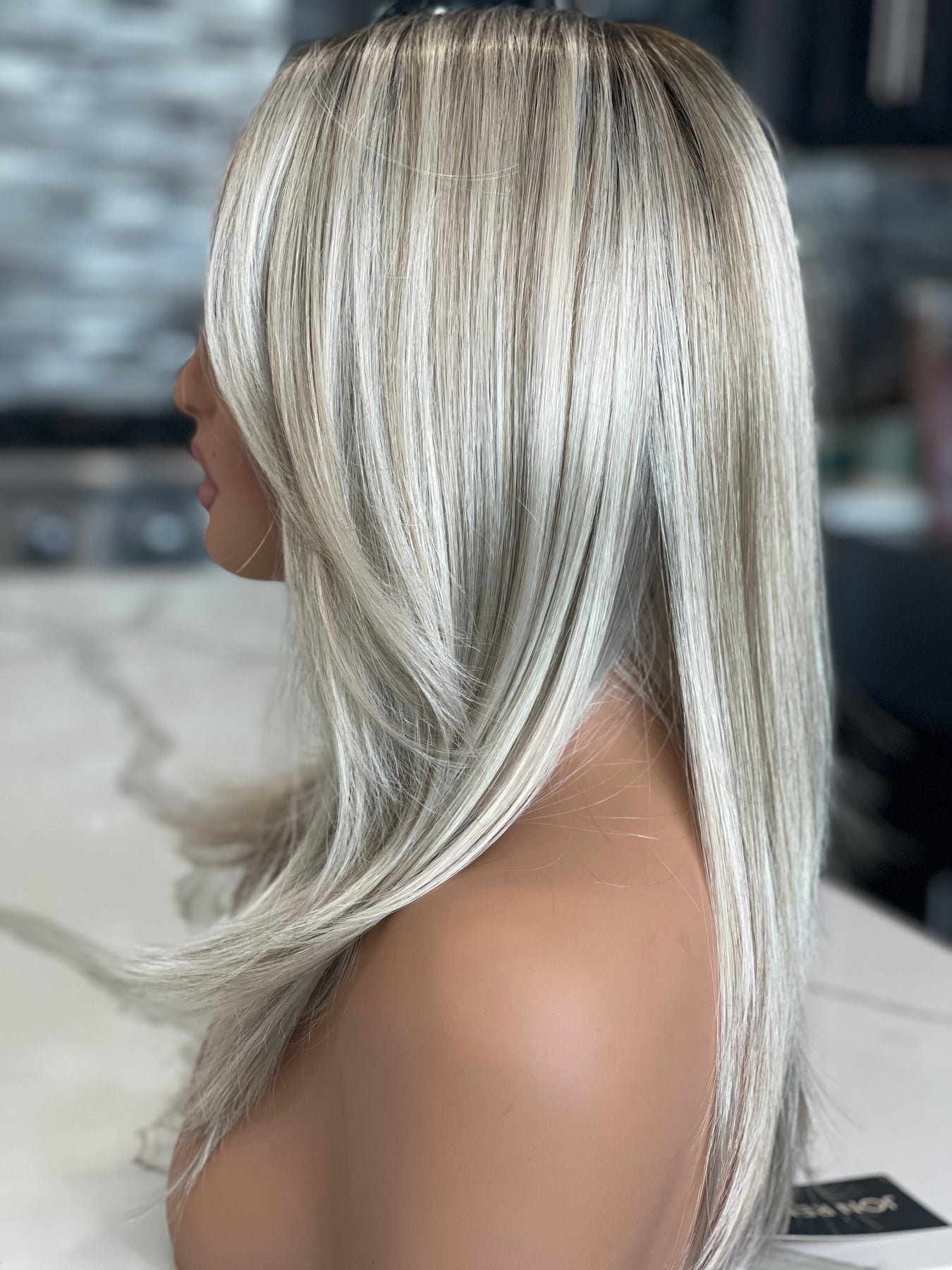 Jillian showcases gentle, flowing layers complemented by a sweeping fringe that elegantly highlights the face. Designed with light density and a wide SmartLace™ front extending ear to ear, it creates an invisible, natural-looking hairline. The monofilament crown and hand-tied back ensure realistic movement and all-day comfort. Its long length offers endless styling options, making Jillian perfect for sophisticated events or casual daily wear, easily transitioning from day to night with grace.